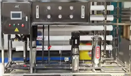 當我們的原水從原水箱中引入我們的二級反滲透設備中后,通過原水加壓泵的一個壓力推進進入到我們的多介質過濾器,多介質過濾器主要是通過不同體積的多層濾料組成,我們的原水通過多介質過濾器,原水中砂礫、膠體等固體雜質會因體積原因被多介質攔截留下,剩下的原水就再次進入到我們的活性炭過濾器中,活性炭過濾器能夠吸附原水中一定程度的有機物以及余氯,同時也可以幫助我們的原水除去色素以及異味。然后原水進入到我們的軟水器中,顯而易見這個環節便是為了降低我們原水中的硬度而設計的,但這個可以視實際情況而定,如果水質硬度大則需要用到這個環節。后面的保安過濾器主要的目的就是為了后面的反滲透裝置做鋪墊,在保安過濾器將原水中可能污染到反滲透裝置的雜質進行去除后我們的原水就會進入到我們的反滲透裝置,兩級反滲透裝置對于原水的處理效果我們需要視實際情況而定,看我們所應用的領域是什么,進而選取相對應的反滲透膜元件進行有針對性的水處理工作。兩級反滲透裝置的反滲透膜元件以及相應的配件可以是不同的型號不同特點的產品,能夠更加全面地我們的原水進行過濾,過濾后的原水便會進入到我們的儲水罐中等待使用。